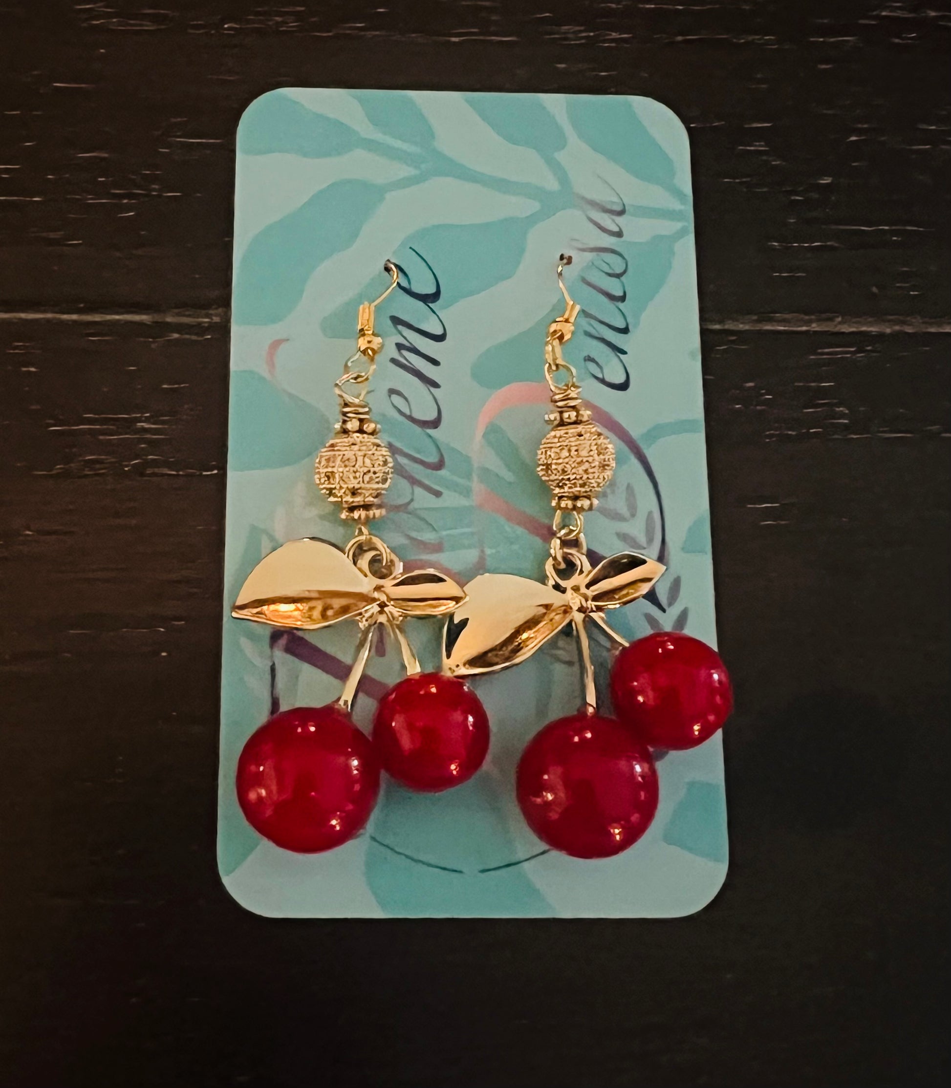 Golden Stainless steel ear wires with CZ beads and Cherries. These are absolutely gorgeous. Picture does not even do them justice. I would grab them today, as I only have the one pair.